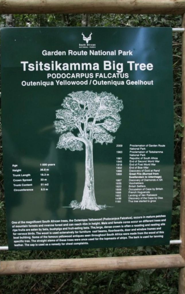 No visit to South Africa’s Garden Route would be complete without visiting one of the Outeniqua Yellowwood (Podocarpus Falcatus) “Big Trees”
